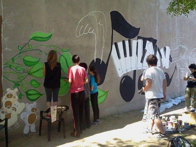 A través de reuniones de trabajo en la EIS entre docentes y alumnos se fijaron las ideas previas para plasmar un mural sobre la maternidad, en el patio de la Casa de las Madres. Se trata de una actividad integradora, que incluye a todos los cursos de la Escuela. “Y gracias a la alta convocatoria y al espíritu solidario de los jóvenes se está llevando a cabo con éxito”, señaló Picky Seró, una de las docentes de la EIS a cargo de la actividad.