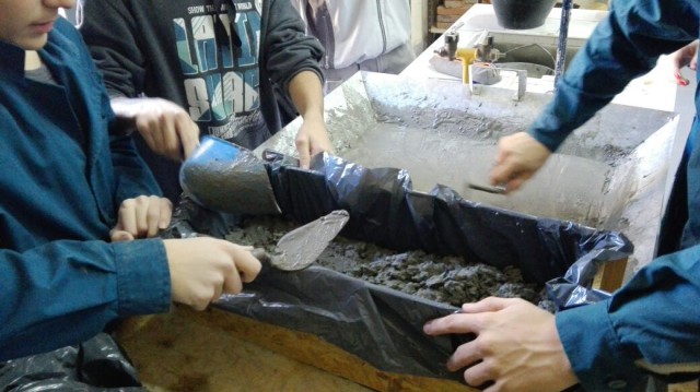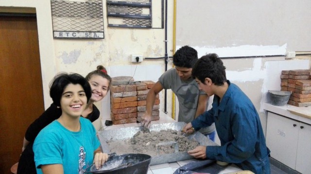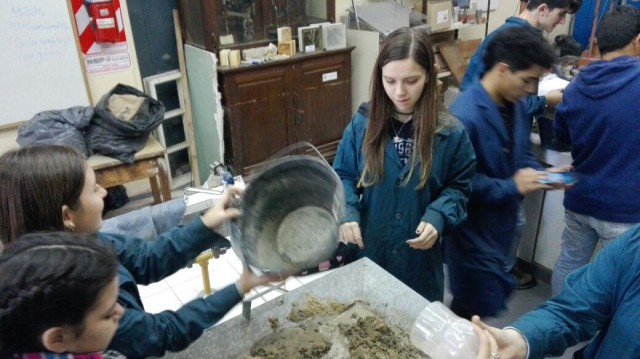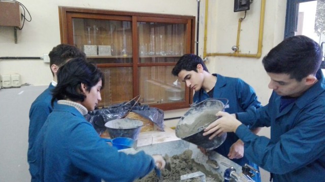 En relación a esto, esta semana se realizó una práctica de construcción de cimientos, a escala, trabajando con distintos hormigones (de piedra y de cascote). Los alumnos de 4to. año realizaron la mezcla de los materiales pudiendo observar los distintos comportamientos de los mismos, aprendieron también, sobre el uso de las herramientas, experimentado algunas prácticas comunes de una obra.