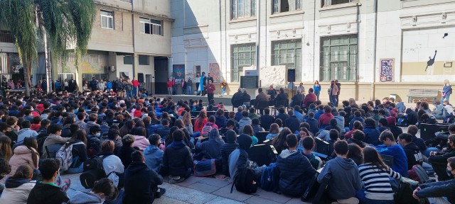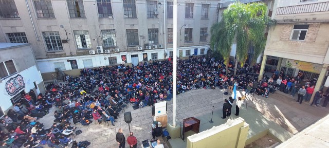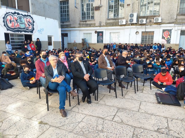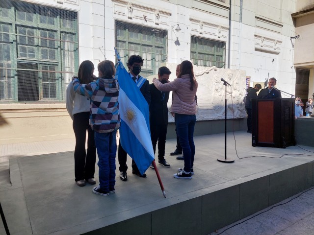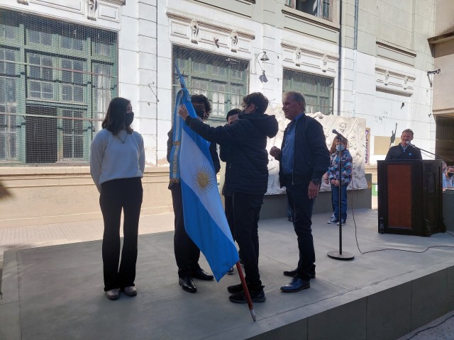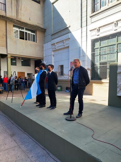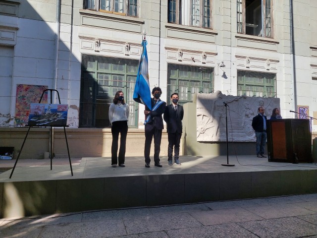 El viernes 1 de abril por la mañana, en la Escuela Industrial Superior se realizó un acto organizado por el Departamento de Física. La comunidad educativa se reunió en el Patio Central para recordar esta fecha importante para la soberanía argentina. Desde el año 2000 cada 2 de abril se conmemora en nuestro país el “Día del Veterano y de los Caídos en la Guerra de Malvinas”. Cabe destacar que si bien esta efeméride alude a los “veteranos”, recientemente se han visibilizado las historias de mujeres que también protagonizaron la Guerra de Malvinas desempeñándose como instrumentistas quirúrgicas y enfermeras; como personal a bordo de aviones que trasladaban heridos de las islas al continente; como oficiales o personal de buques mercantes con tareas logísticas; o como parte de operaciones de inteligencia.
