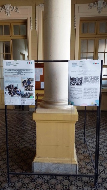 En segunda instancia, se pudieron recorrer en el hall de la EIS los posters de todos los trabajos presentados. La actividad continuó con cuatro salas con conversatorios en las cuales los y las docentes presentaron los trabajos extensos bajo la modalidad "Relato de experiencias en conversatorio".