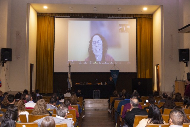 Tras los discursos, la primera actividad fue la conferencia “La educación secundaria técnica y la formación para el trabajo: hallazgos y contribuciones de un programa de investigación en educación, economía y trabajo”, a cargo de Natalia Herger, docente investigadora del Programa Educación, Economía y Trabajo (PEET) del Instituto de Investigaciones en Ciencias de la Educación (IICE) de la Universidad de Buenos Aires (UBA).