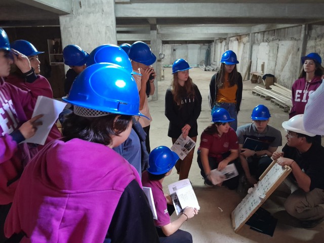 La visita fue guiada por la presencia de Gustavo Burkett y María Florencia Giussano, proyectistas del edificio, así como la participación de Maximiliano Ponce, encargado de la obra y graduado de la EIS.
