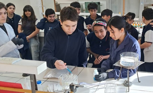En el marco de la Práctica de Extensión en Educación Experiencial denominada “El enigma de la etiqueta... ¡Descubre lo que comes!” y coincidiendo con el mes de la Alimentación impulsado por la UNL, estudiantes de 5º y 6º año de la Especialidad Química de la Escuela Industrial Superior desarrollaron actividades en el laboratorio junto a alumnos de 7º grado de las escuelas Juan José Paso y Mariano Moreno.