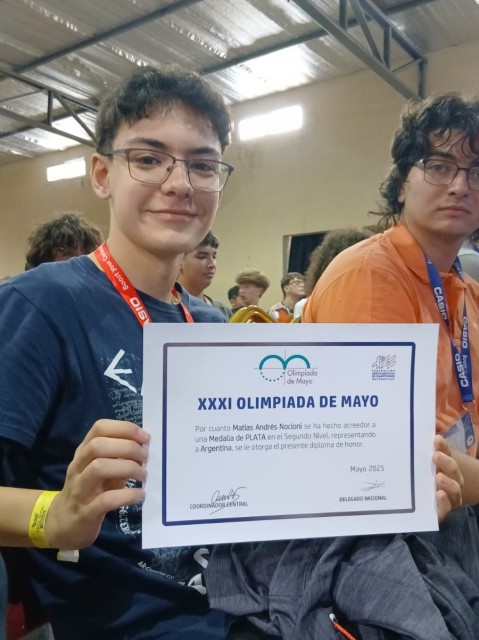 Durante el acto de premiación de las competencias internacionales, realizado el jueves 13, fue distinguido Matías Nocioni, quien obtuvo la Medalla de Plata en el Segundo Nivel de la Olimpíada de Mayo, organizada por la Federación Iberoamericana de Competiciones Matemáticas. El estudiante representó al país con una actuación sobresaliente.