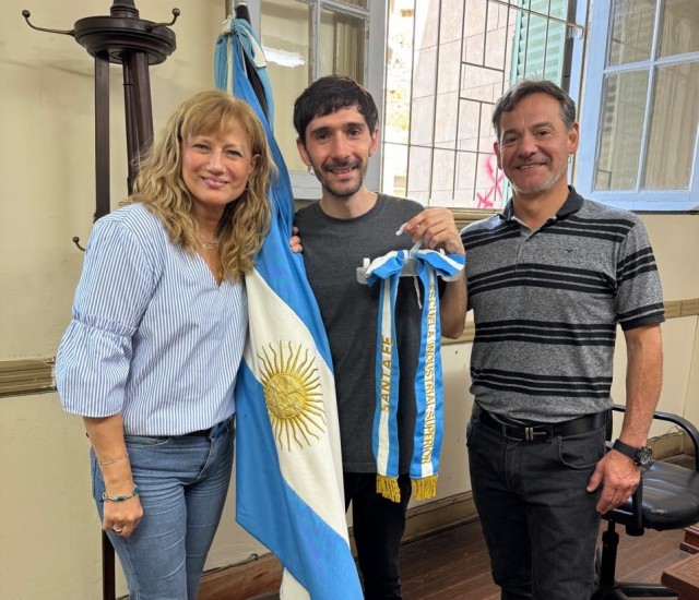 La Escuela Industrial Superior recibió con gran alegría un especial obsequio de uno de sus egresados. Matías Rodríguez, promoción 2013 de la especialidad Mecánico Eléctrica, donó a la institución el moño del mástil de la bandera de ceremonias, un símbolo representativo del orgullo y la identidad escolar.